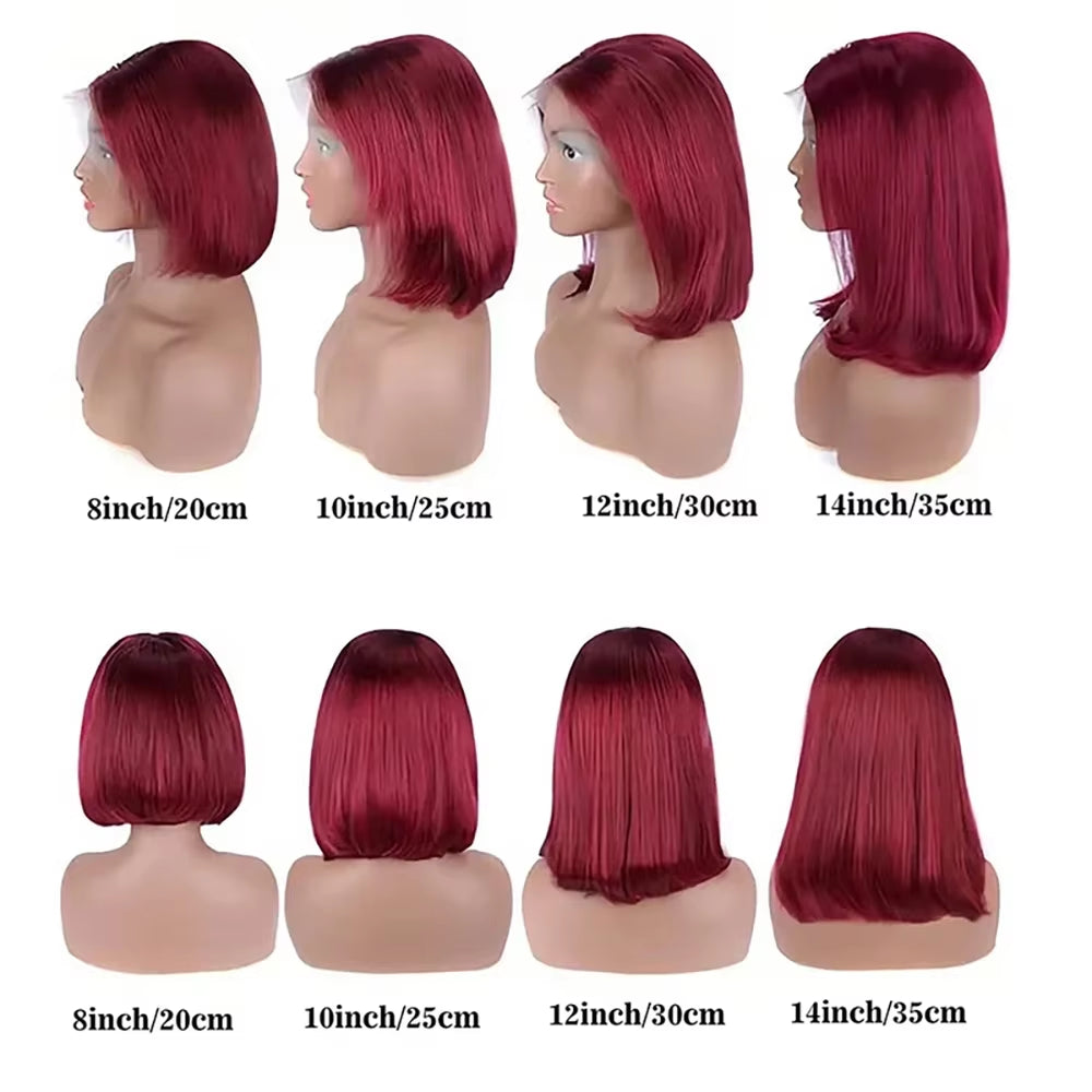 13x4 Wear and Go Glueless Bob Wig Human Hair Straight Bob Wigs Human Hair 100% 99J Red Colored 7x5 Glueless Wigs Ready to Wear